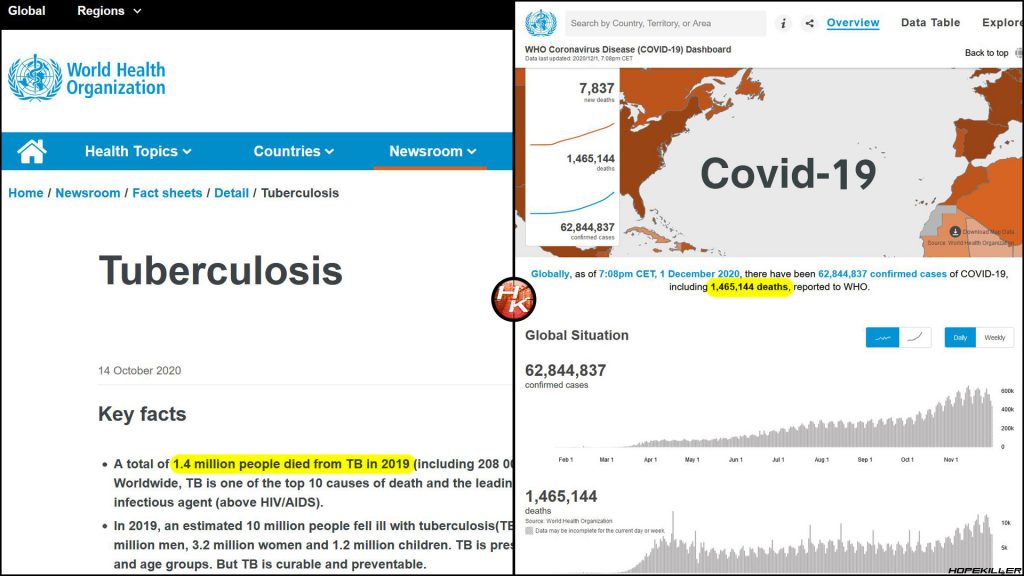 In 2019 1.4 million people died from TB, and you had no idea. In 2020 1.4 million died from COVID-19 (a majority of which had at least 2.6 comorbidities, AKA other fatal health conditions) and we see western civilization being torn to shreds.