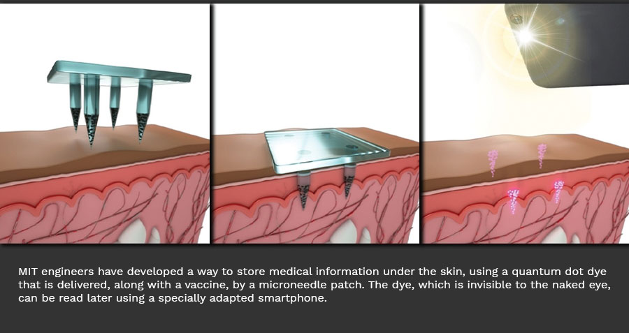 MIT researchers have now developed a novel way to record a patient’s vaccination history: storing the data in a pattern of dye, invisible to the naked eye, that is delivered under the skin at the same time as the vaccine.