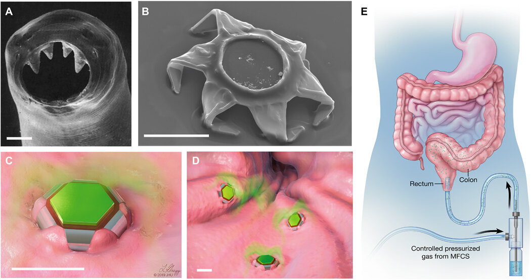 Inspired by a parasitic worm that digs its sharp teeth into its host’s intestines, Johns Hopkins researchers have designed tiny, star-shaped microdevices that can latch onto intestinal mucosa and release drugs into the body.